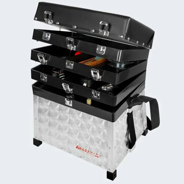 Arapaima Fishing Equipment® ´4-Drawer´ Aluminum Seat and Tackle Box This classically designed Arapaima Fishing Equipment tackle box offers ample storage space.