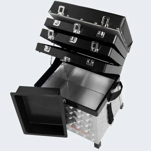 The lower part of the box is covered with aluminum and therefore perfectly protected against damage and dirt.