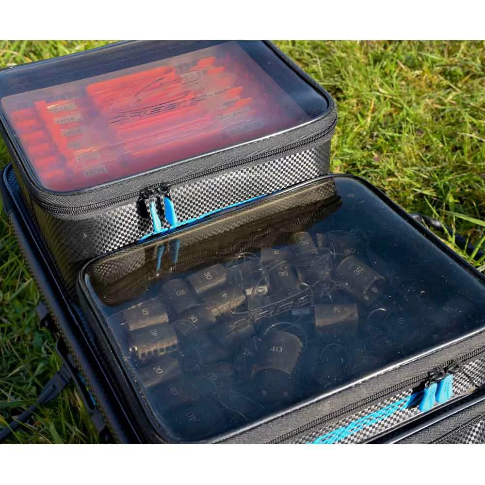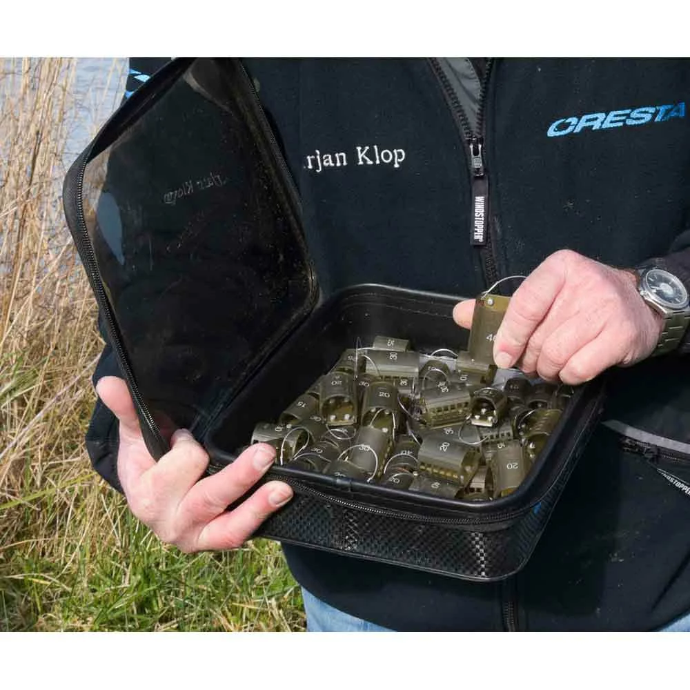The waterproof EVA Accessory Bag Large Low offers space to numerous accessories, such as feeder, rigs, reels and other tackle, including the Cresta Modular hooklength system.