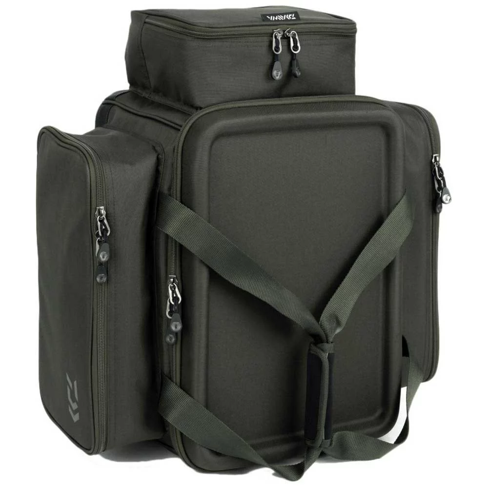 The ´´Ruckall´´ is ideal for moving between swims within a single session. It has been designed to optimise storage of Infinity System boxes and pouches and is matched to the height of the Infinity System bedchair, meaning you can easily slide it underneath to save space. Features a solid top that can also double up as a prep surface. What´s more, the PVC internal lining makes it easy to wipe down while the PVC base protects the contents from rain or moisture on the ground. The bag is made up of three external pockets, two long side pouches, and a single, smaller upper compartment. The bag comes with a rucksack style detachable carry strap and two carry handles for easy loading. The rigid top and PVC bottom seal the deal, keeping everything clean and dry.