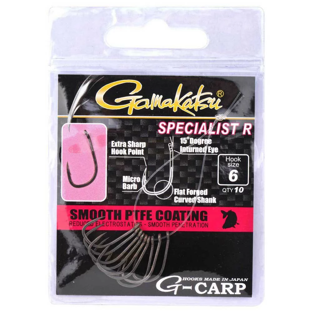 A great claw hook that offer factastic hooking characteristics thanks to the ultra thin and super Sharp point and its 15-degrees in-turned eye. The wide gape allows this hook to hold better, even under heavy pressure. The in-turned curved point also offers major advantages on a bumby bottom; these hooks remain sharper longer than hooks with a straight point because they are protected better against ie. stones and rocks. The special ‘flat forged curved shank’ gives it extra strength and power. Specialist ‘R hooks are ideal for River fishing or for fishing on waters where a lot of pressure needs to be put on the fish after it is hooked. Thereby this is the ideal hook shape for when fish have a softer mouth such as in the summer with higher water temperatures!Tip: by using this hook in a line-aligner set-up it will hook faster.