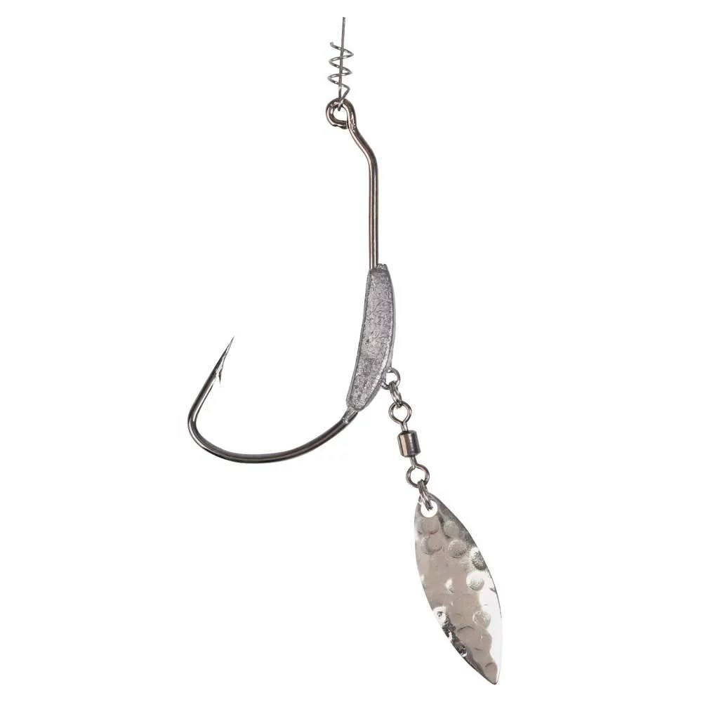 High quality shank-weighted hook. Specifically designed to balance the vinyl swimbaits in the fishing action. Rear blade that generates attractive extra vibrations.