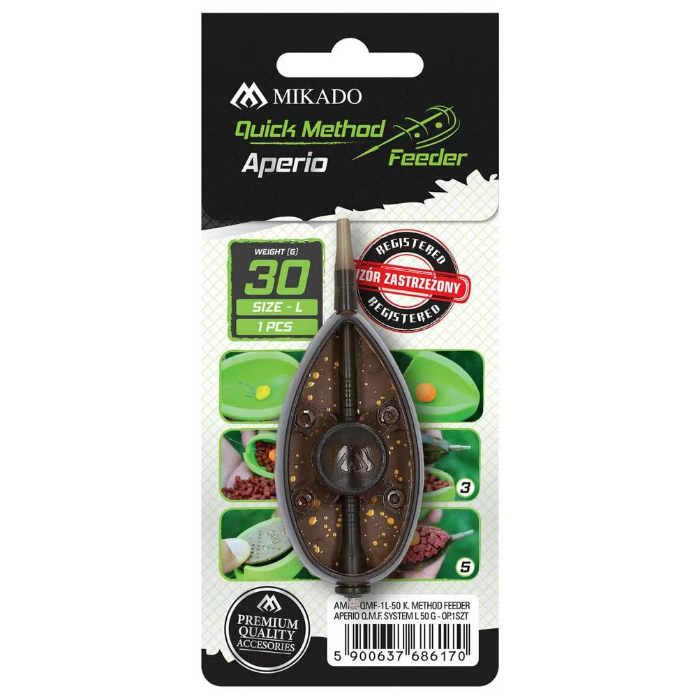Newest release of the great Method Feeders Aperio. Q.M.F. is a system that allows to quickly and easily exchange the feeder, not taking the entire rig apart in process. Remove the rubber sleeve, slide the feeder off the pin, change it to different one.
