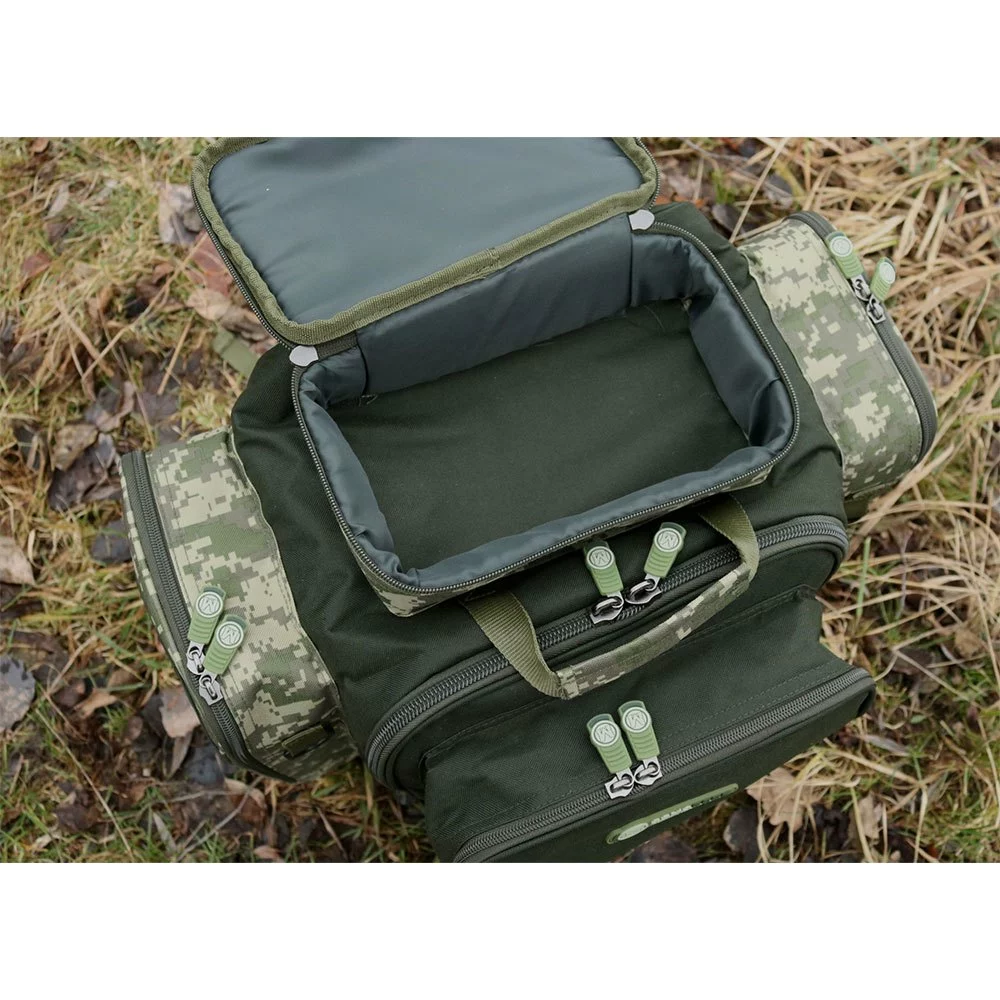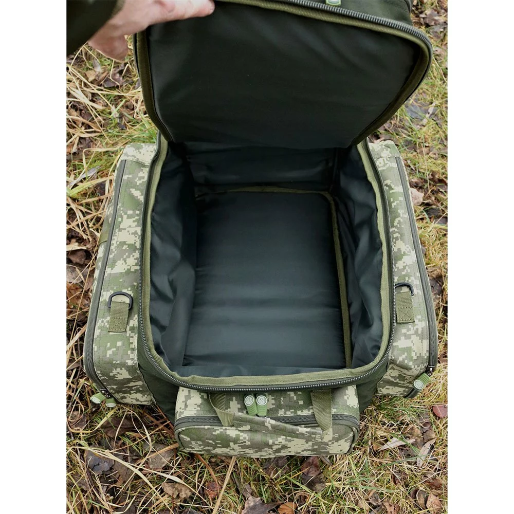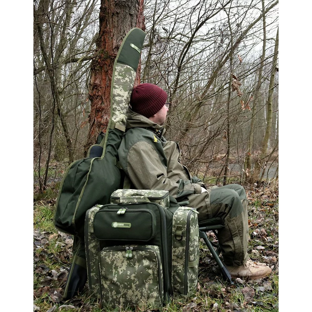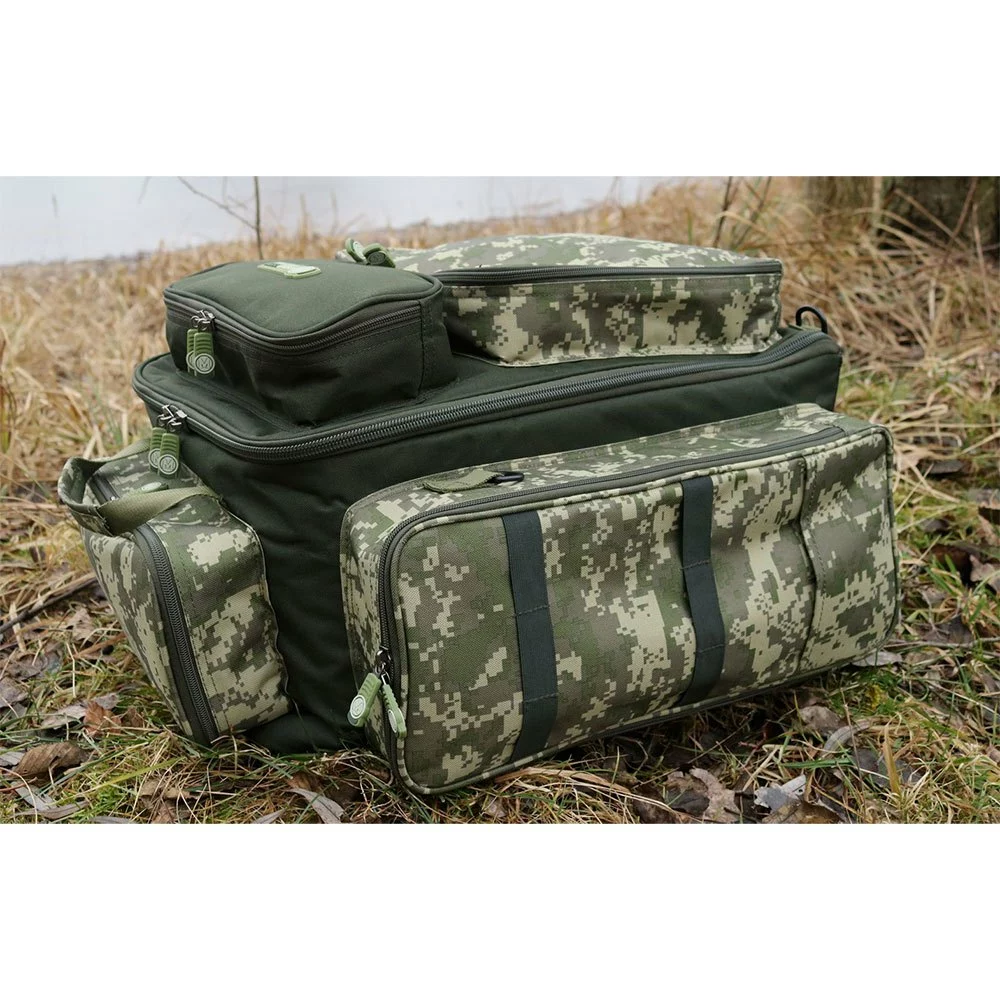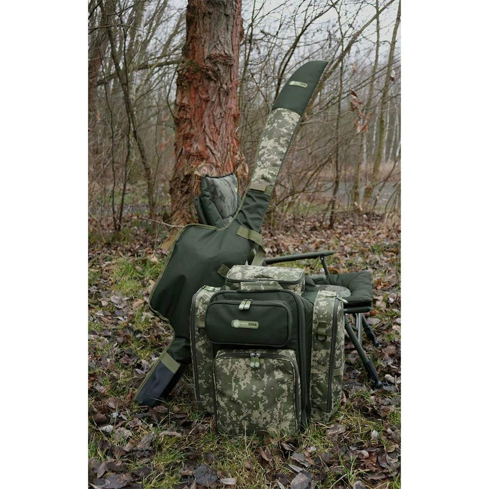 A fully featured luxurious rucksack in a digital camouflage design.
