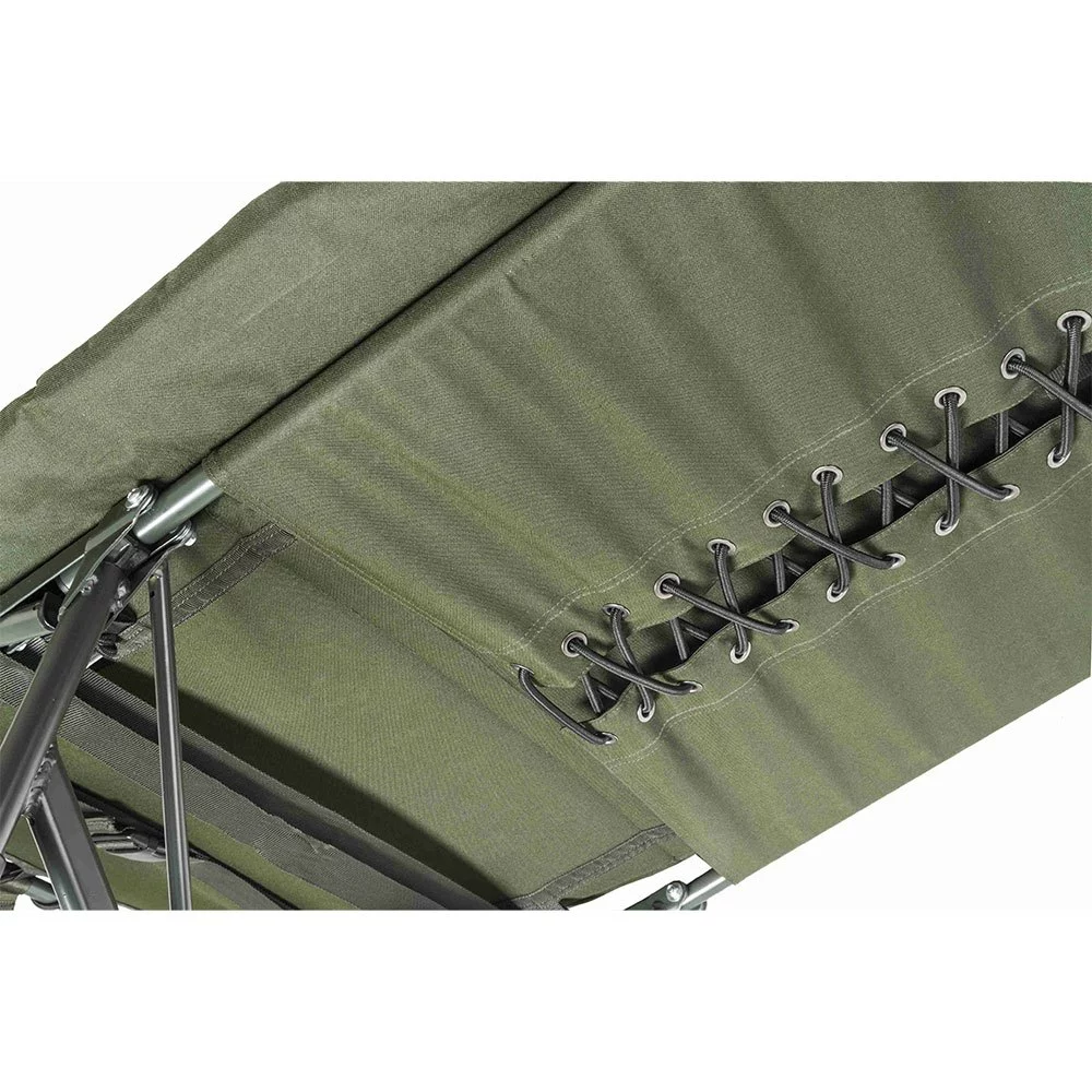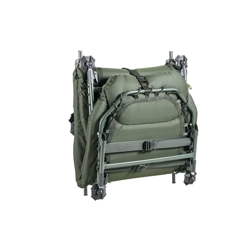An extra light and fully flat bedchair in the digital camo design. The thick mattress with fleece cover offers really high comfort. The hardness can be adjusted by the advanced tension system in the middle part and additional adjustable tension straps. An advantage is the long maximum length of the adjustable legs with large mud foots. The Stealth bedchair comes in 8-legs and 6-legs versions.