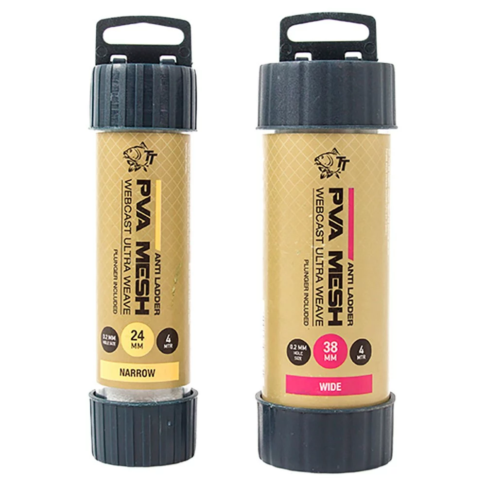 The choice for small feed particles like fry crumb and micro pellets the slightly extended breakdown time of Webcast Ultra Weave guarantees your feed remains tightly grouped around the rig even in deep waters and in summer water temperatures or if you wish to straighten a rig out on the bottom.Like Webcast PVA the Ultra Weave is supplied on a dispenser tube that fits inside bait boxes commonly used for storing bag and stick fillings and comes complete with a loading plunger for aerodynamic bags.