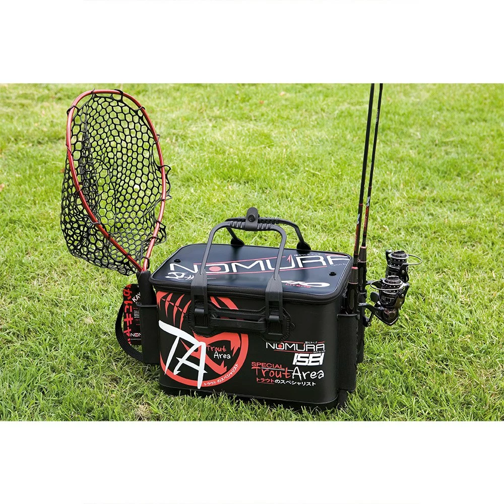 A new waterproof EVA bag designed by the Nomura team to make your Trout Area session much easier. The bag is equipped with 2 rod holders and a net holder; thanks to the capacity of 40 liters, it can contain all your accessories and lures. Equipped with shoulder strap to facilitate transport and 2 joinable rigid handles