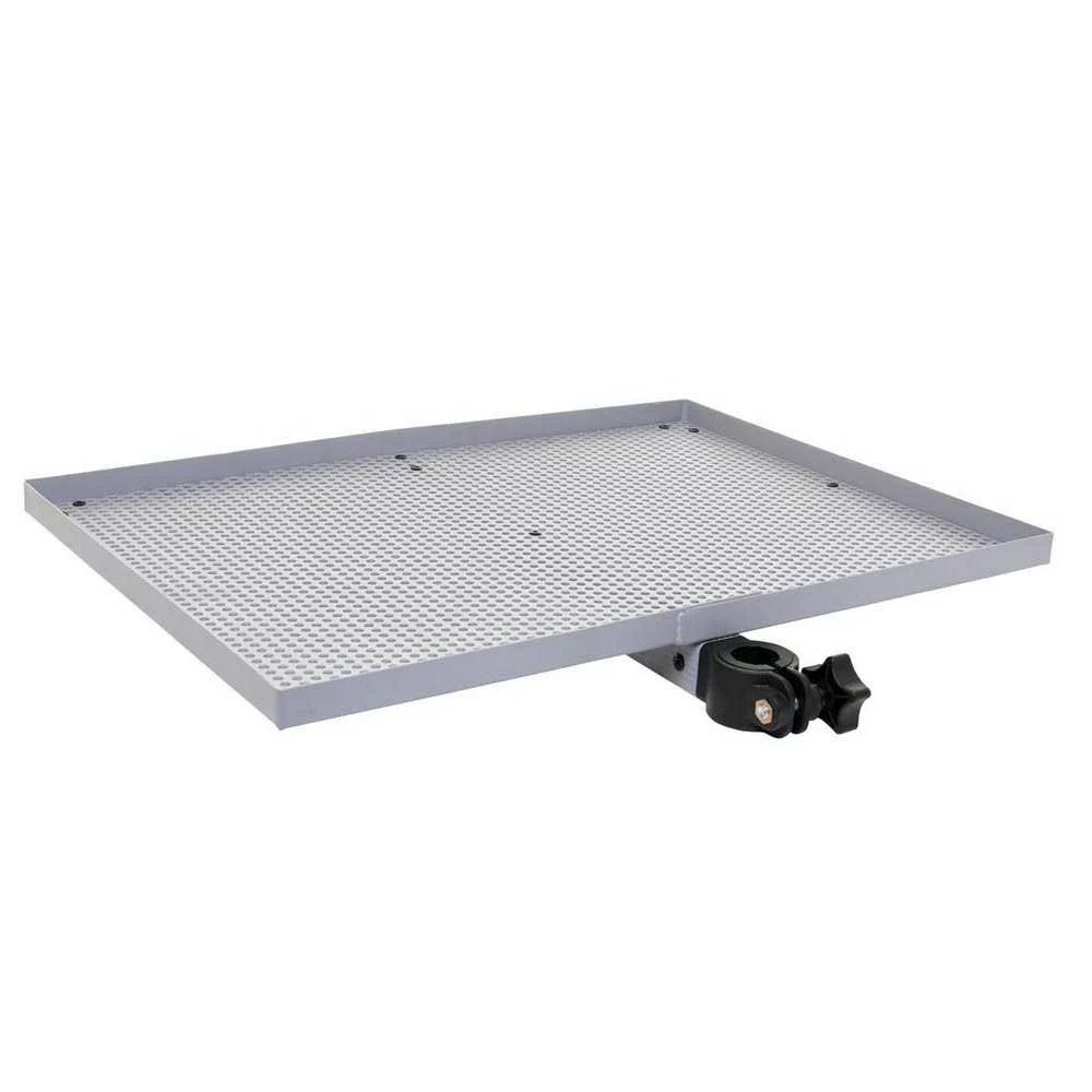 Keep You Bait And Tackle Items Within Reach With This Compact Side Tray. A Perforated Base Allows Easy Water Dranage And An Additional Accessory Screw Fitting Allows For Additiosn Such As Pole Scocks, Tulip Grips Etc. Also Multi-Fit Collars Allow This To Be Used On Seatboxes With Multiple Diameter Legs.