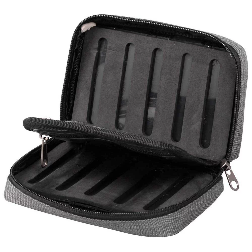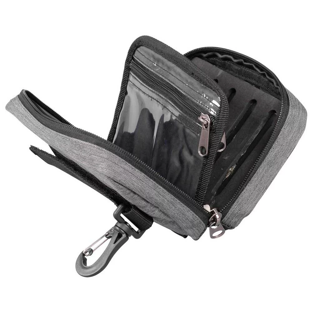 The Ultrafree Lure Pouch is an extremely compact jigging bag featuring two foam boards to store pre-rigged lures and a central PVC pocket to store fluorocarbon or snaps.